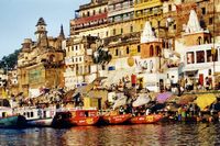 sacri degli indu con le rituali abluzioni ritmiche nel fiume, mentre i